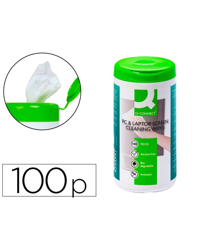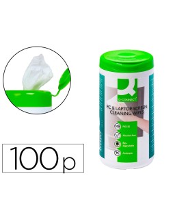 Toallitas q-connect limpiadora de pantallas y teclados bote de 100 unidades