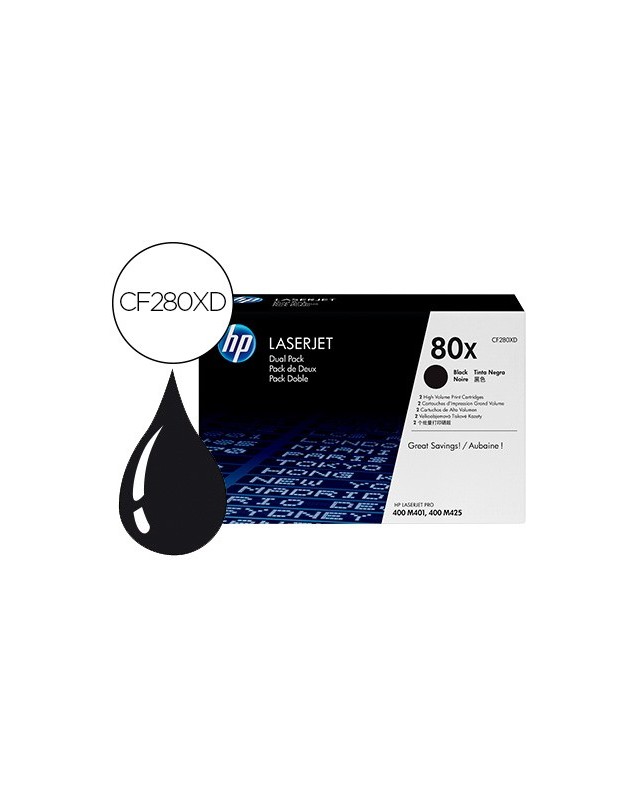 Toner hp laserjet pro 80x m401 m425 negro pack de 2 unidades 6900 paginas