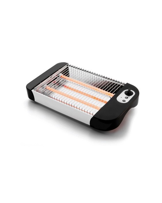 Tostadora eléctrica horizontal con parrilla en acero inoxidable que permite tostar todo tipo de pan, hogazas, barras, rebanadas, y también bollería y sándwiches. Interruptor de encendido y luz. Tostador horizontal con regulación de temperatura hasta 360ºC y con 6 niveles de potencia. Bandeja recogemigas extraible. Potencia: 600w. Tamaño parrilla: 250 x 200 mm. Medidas: 360 x 65 x 210 mm. Peso: 1 kg.