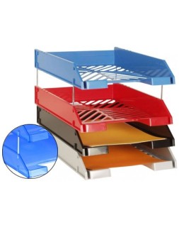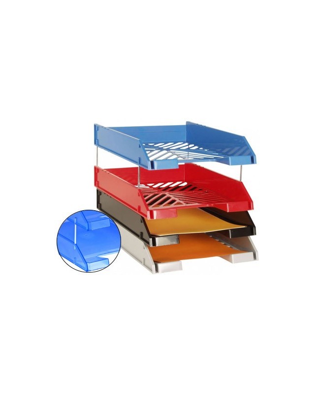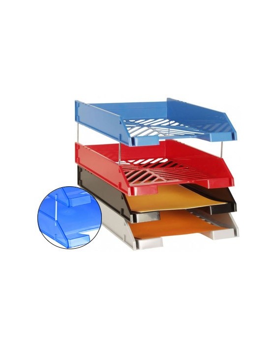 Bandeja con fondo liso. Posibilidad de utilizar varillas elevadoras metálicas que aumentan su capacidad facilitando el acceso a los documentos. Con hendidura frontal para un fácil acceso. Para documentos formatos DIN A4 y folio. Color cristal. Medidas: 260 x 60 x 340 mm.