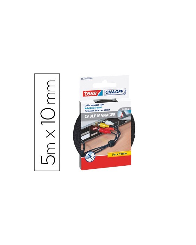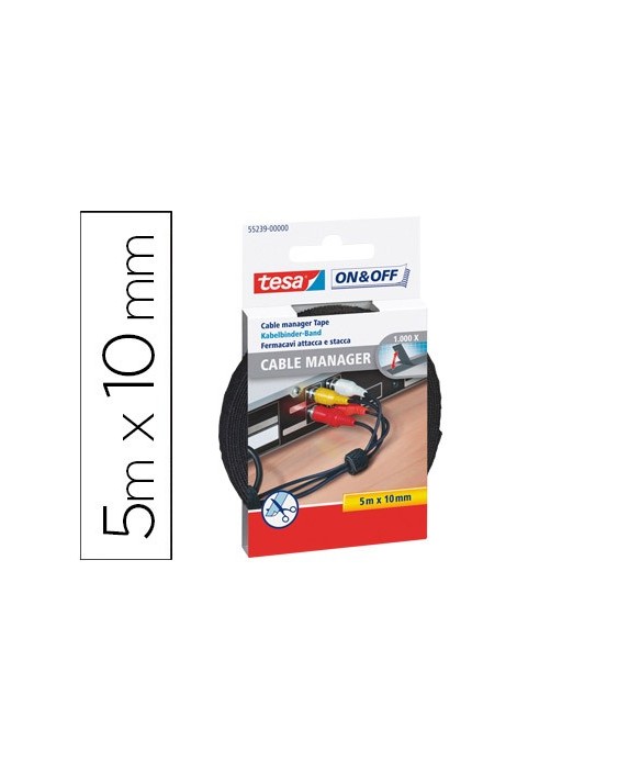 Velcro adhesivo tesa para agrupar cables 5 m x 10 mm color negro
