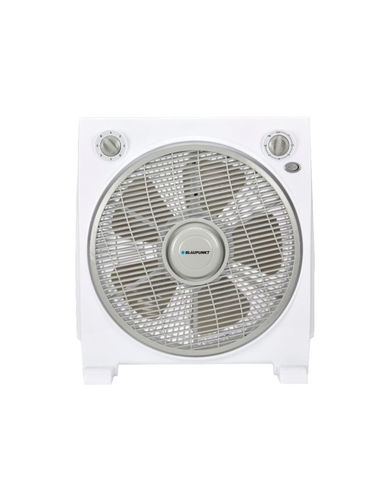 Ventilador de tipo box que concentra un gran caudal de aire en un formato cuadrado ultracompacto, perfecto para escritorios, mostradores y zonas de cobro donde cada centímetro de superficie cuenta. Su motor de 45 W acciona5 aspas de 30 cm (12 pulgadas) y ofrece 3 velocidades graduadas desde el dial superior, mientras que el temporizador mecánico integrado permite programar el apagado automático y evitar consumos innecesarios cuando la tienda cierra o al terminar clases en un aula. La rejilla protectora frontal ytrasera aporta seguridad frente a niños o mascotas, y las patas antidesli zantes mantienen la estabilidad incluso a máxima potencia. Medidas: 38 x 17 x 42,5 cm.