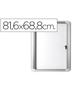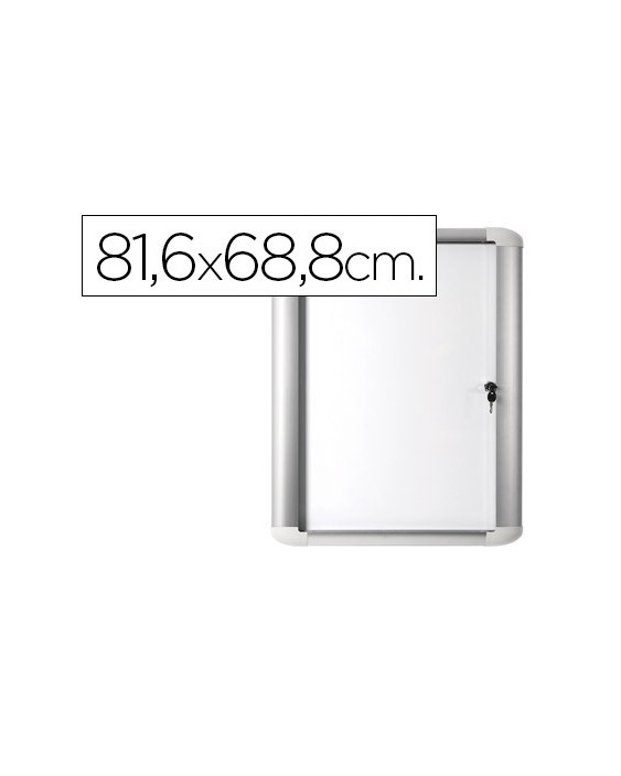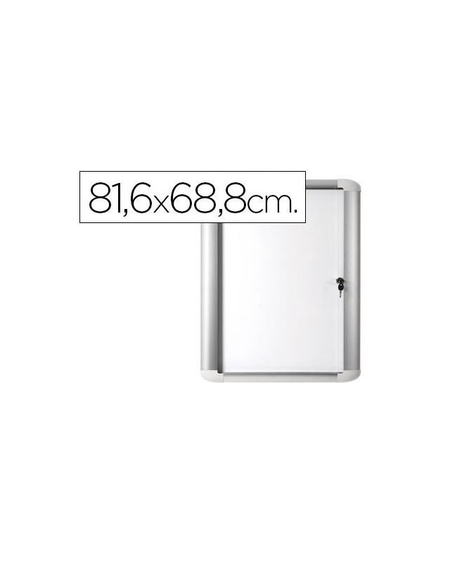 Vitrina de anuncios acristalada con marco de aluminio y superficie magnética de acero lacado. Cuerpo con sello de caucho y parte trasera de acero para evitar que entren polvo y agua. Puerta acrílica de vidrio reforzado de 4 mm de grosor. Solución extrafina y ultraligera para visualizar información. Ideal para pasillos y lugares de trabajo. Cerradura de alta calidad con 2 llaves. Fondo de 3,5 cm.