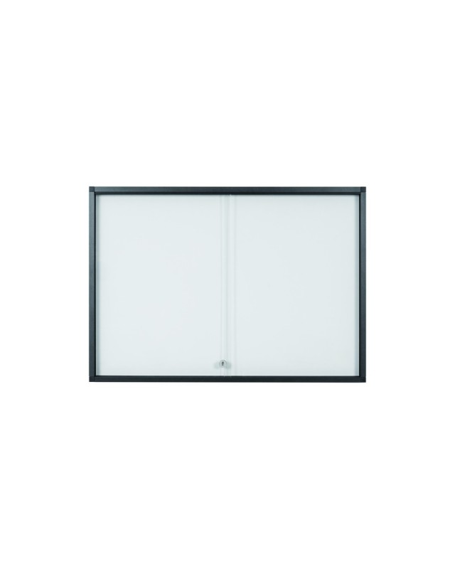 Bi-Office Exhibit Extra Puertas Corredizas es una vitrina delgada y elegante diseñada con estética para adaptarse a cualquier espacio moderno. La superficie de acero lacado en blanco es ideal para sujetar documentos con imanes y también se puede utilizar para escribir mensajes. Viene con puertas de vidrio templado y es ideal para ser utilizado en pasillos, vestíbulos y otras áreas de alto tráfico. Dado que las puertas no se abren hacia el pasillo, los materiales expuestos pueden actualizarse de manera segura. El producto viene con 2 llaves para que una llave de repuesto se guarde en unlugar seguro, en caso de que una se pierda.