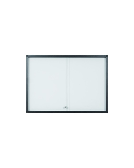 Bi-Office Exhibit Extra Puertas Corredizas es una vitrina delgada y elegante diseñada con estética para adaptarse a cualquier espacio moderno. La superficie de acero lacado en blanco es ideal para sujetar documentos con imanes y también se puede utilizar para escribir mensajes. Viene con puertas de vidrio templado y es ideal para ser utilizado en pasillos, vestíbulos y otras áreas de alto tráfico. Dado que las puertas no se abren hacia el pasillo, los materiales expuestos pueden actualizarse de manera segura. El producto viene con 2 llaves para que una llave de repuesto se guarde en unlugar seguro, en caso de que una se pierda.