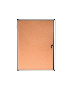Vitrina de anuncios para interior ideal para colgar publicidad, avisos, pósteres, etc. Superficie de corcho y marco de aluminio. Cantoneras redondeadas. Cristal acrílico de gran visibilidad. Cerradura con 2 llaves incluidas. Capacidad para 11 documentos DIN A4. Fondo de 3,5 cm. Medidas: 98,1 x 72 cm.