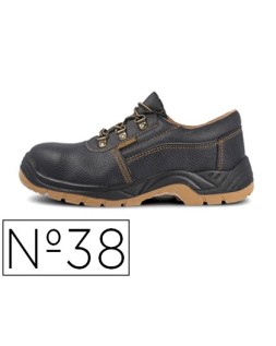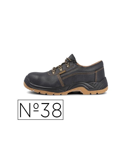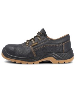 Piel flor grabada, hidrofugada y transpirable. Suela de poliuretano doble densidad. Puntera de acero resistente a un choque de 200 julios. Plantilla antiperforación de acero con una resistencia a la perforación de más de 1100 Newton, 100% de superficie plantar cubierta. Forro High Dry que aporta un alto poder de absorción y secado rápido. Fijación de suela por inyección directa. Acolchados laterales de espuma de látex recubierta de piel. Suela antideslizante SRC, resistente a la abrasión y a los hidrocarburos. Propiedades antiestáticas tanto en mojado como en seco. Certificado S3 SRC según la normativa UNE EN ISO 20345. Color negro.